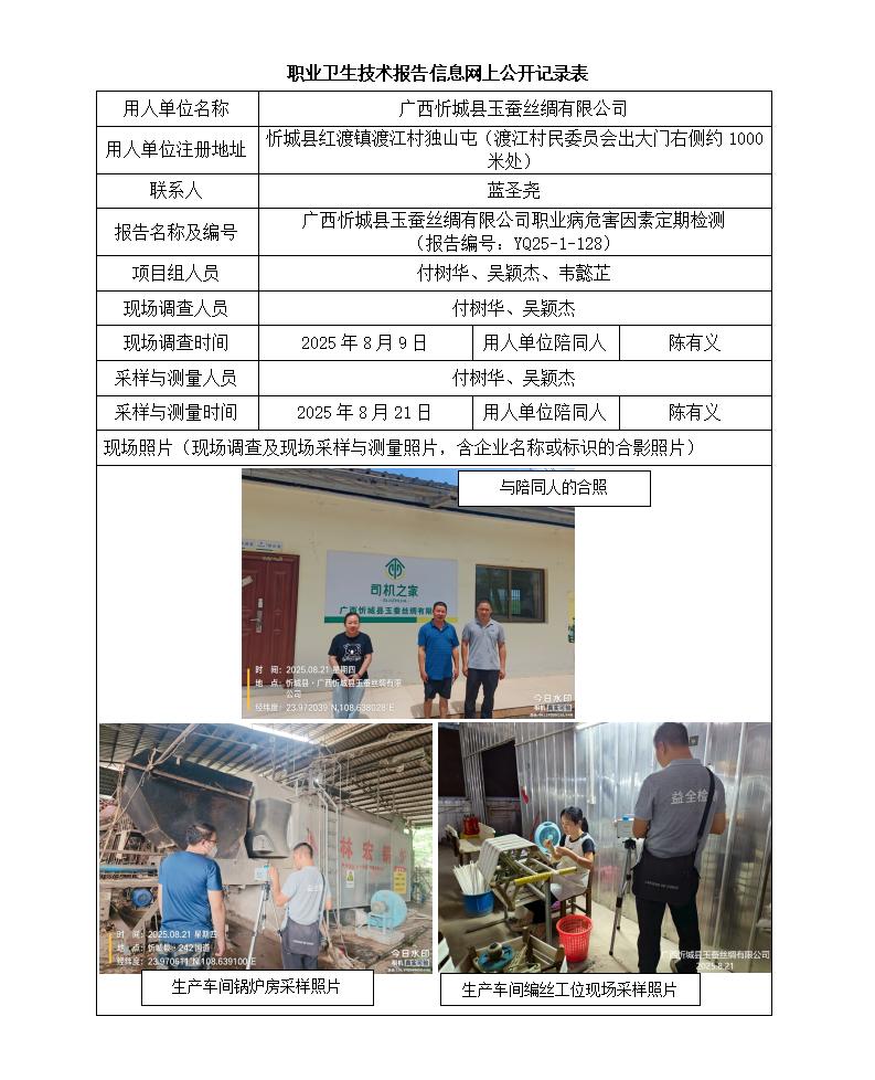 廣西忻城縣玉蠶絲綢有限公司職業(yè)病危害因素定期檢測